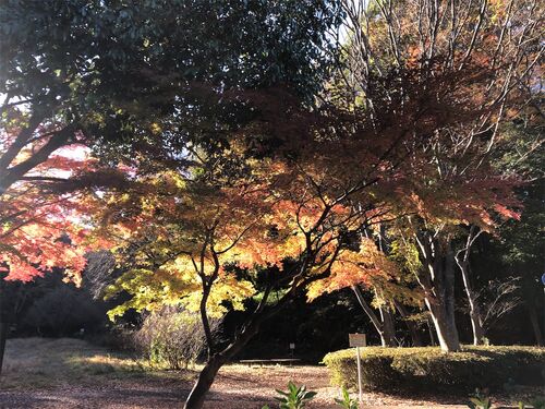 からっ風の吹く晩秋の遊歩道 もみじが西陽に踊ってます 風に吹かれてキラキラキラキラ 枝も,枯れ草も西陽を受けて踊ってます 赤いもみじは燠火のよう オレンジのもみじは燃え上がり 黄色いもみじはキラキラキラキラ イチョウも黄葉