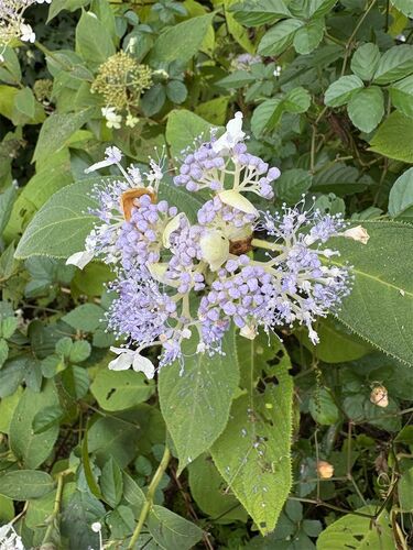 朝からカーッモァー カーッモァー それでも沢風が涼しい6号路では タマアジサイが咲き誇ってます 殻をつけてますね つぼみは玉のようで つぼみの玉を破って中から咲くので タマアジサイと名付けられたそうです 確かに破って咲いてます ガクアジサイっぽく見…